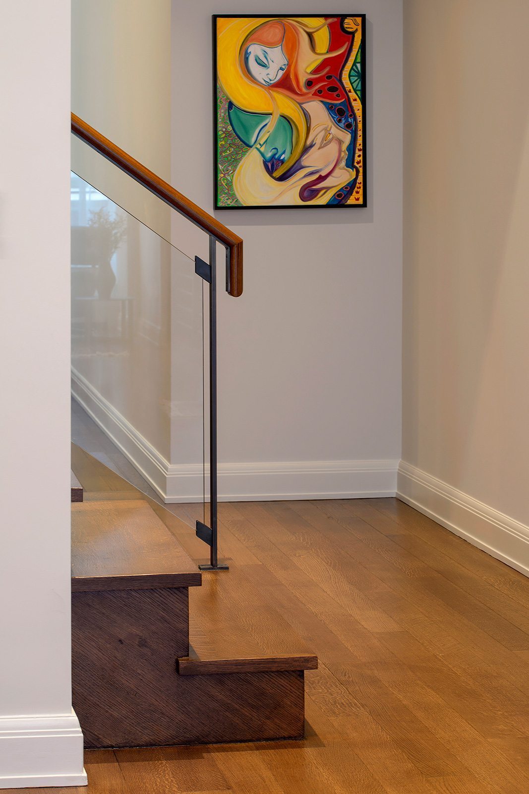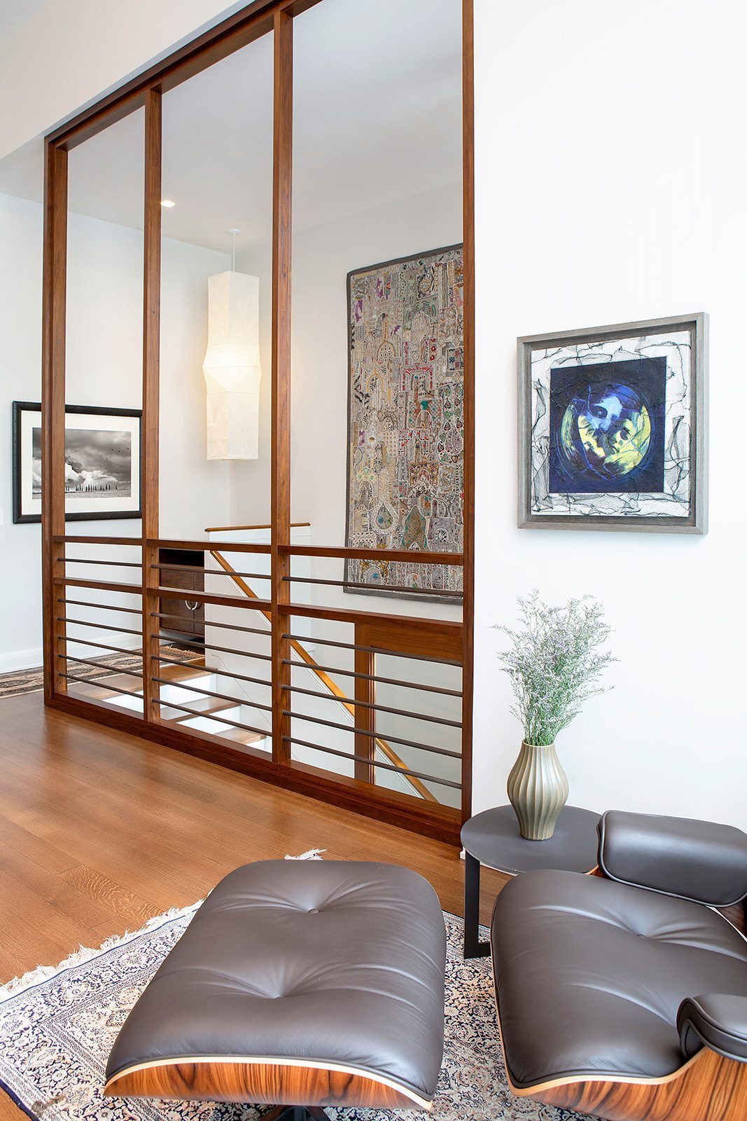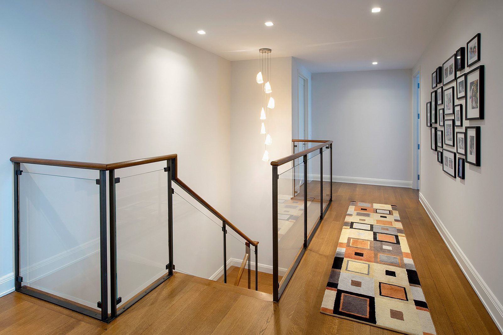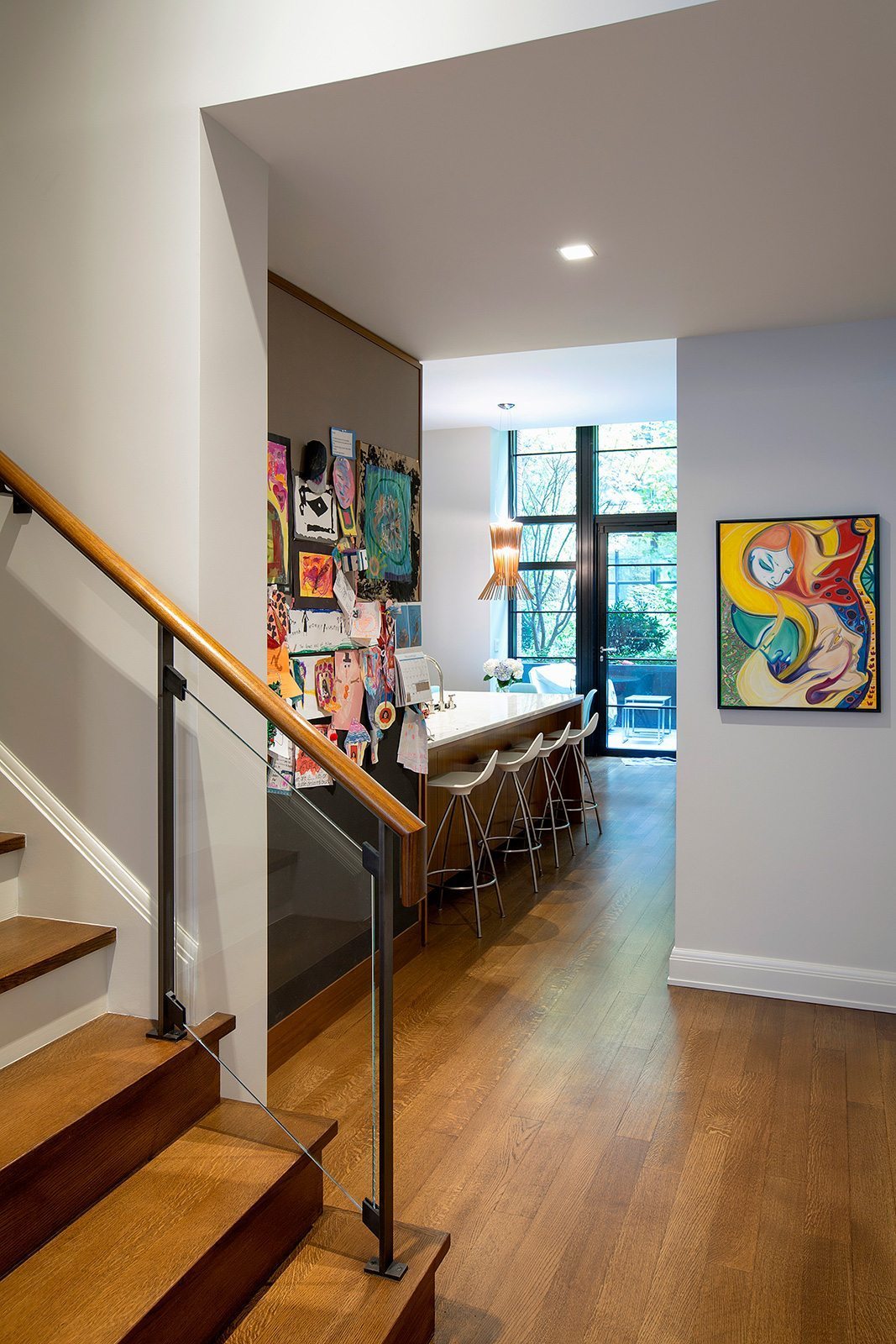 High-end painting and finishes over newly skim-coated walls throughout the entire house.  Custom millwork and furniture. Custom closet and storage systems and specially-designed handrails on all stairways.  . A distinctive display area for the children’s artwork. Addition of a sophisticated A/V system to make the entire project a “smart” home.