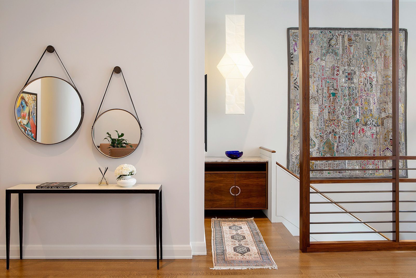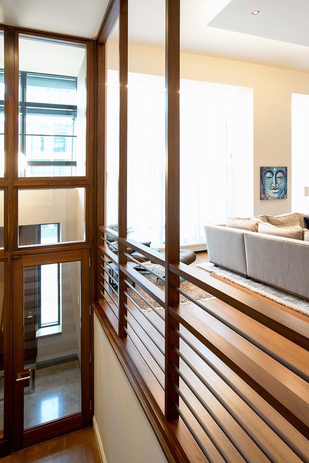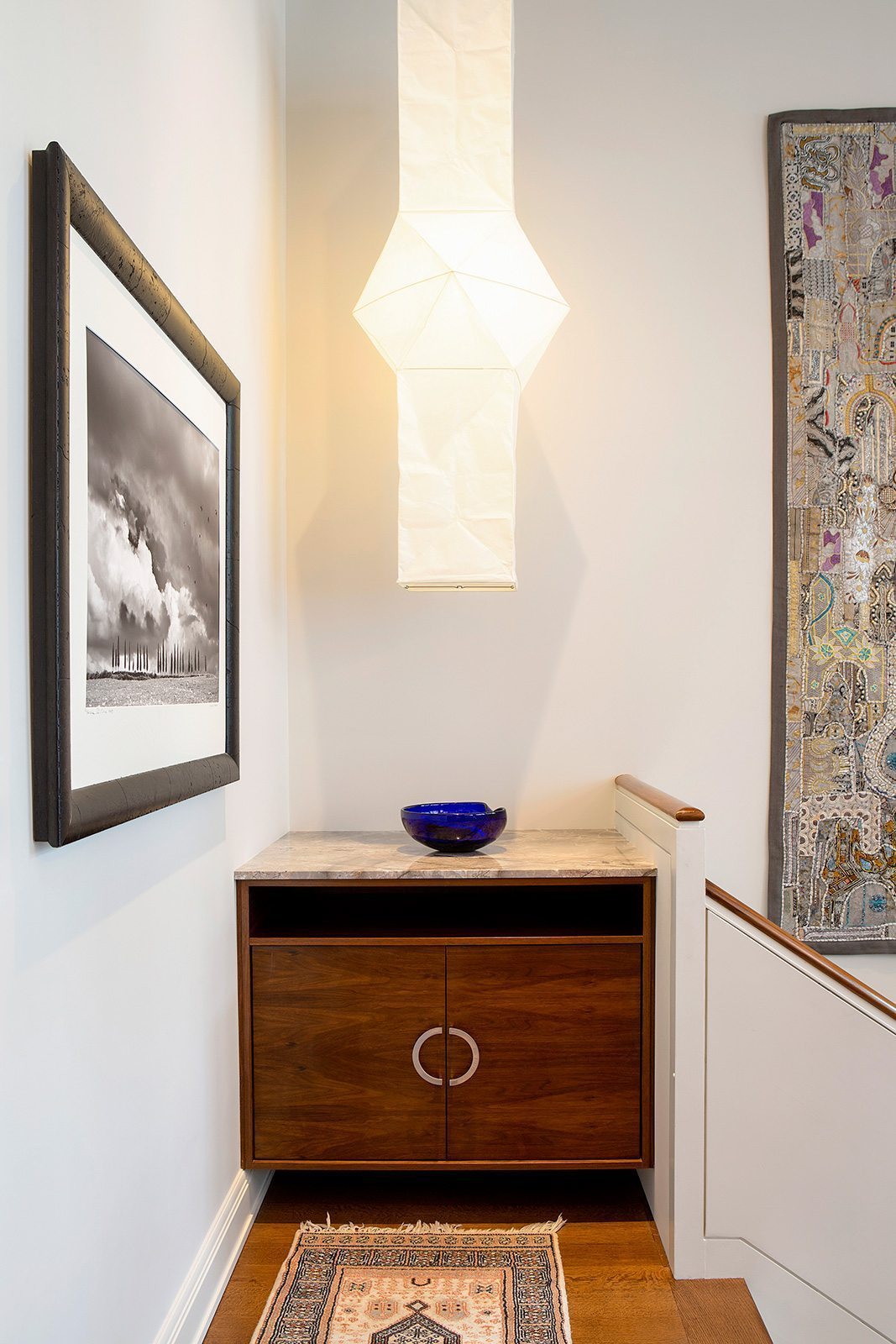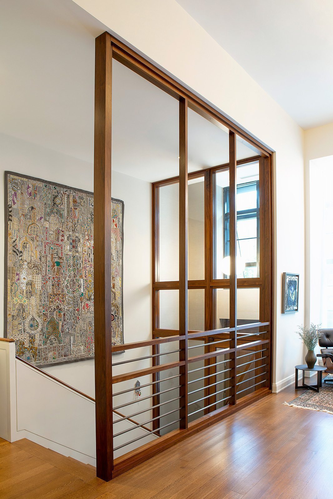 High-end painting and finishes over newly skim-coated walls throughout the entire house.  Custom millwork and furniture. Custom closet and storage systems and specially-designed handrails on all stairways.  . A distinctive display area for the children’s artwork. Addition of a sophisticated A/V system to make the entire project a “smart” home.