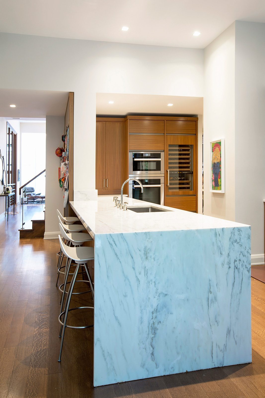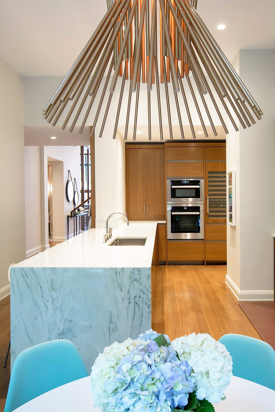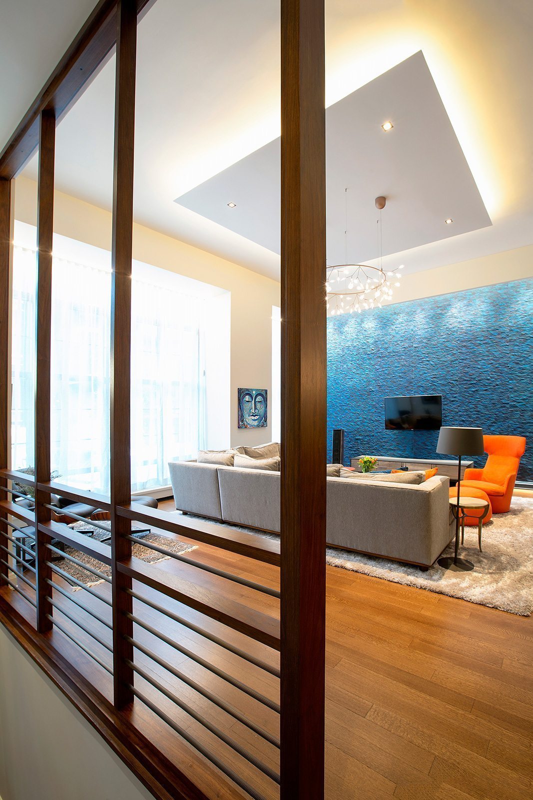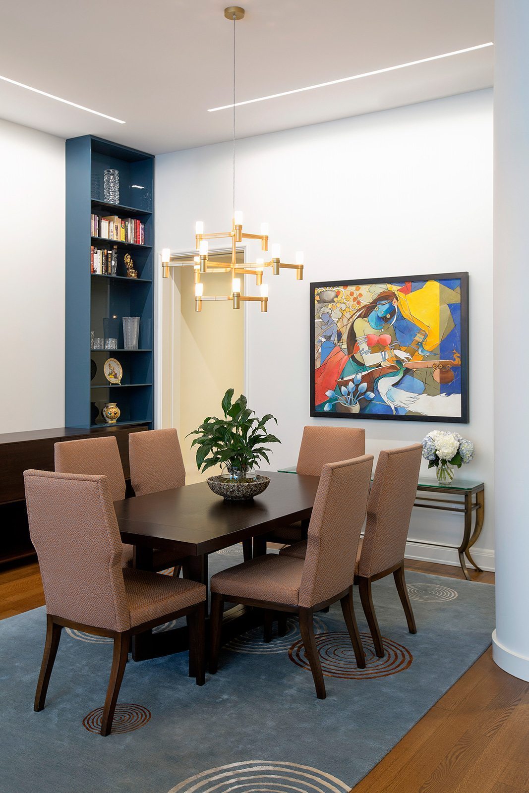 High-end painting and finishes over newly skim-coated walls throughout the entire house.  Custom millwork and furniture. Custom closet and storage systems and specially-designed handrails on all stairways.  . A distinctive display area for the children’s artwork. Addition of a sophisticated A/V system to make the entire project a “smart” home.
