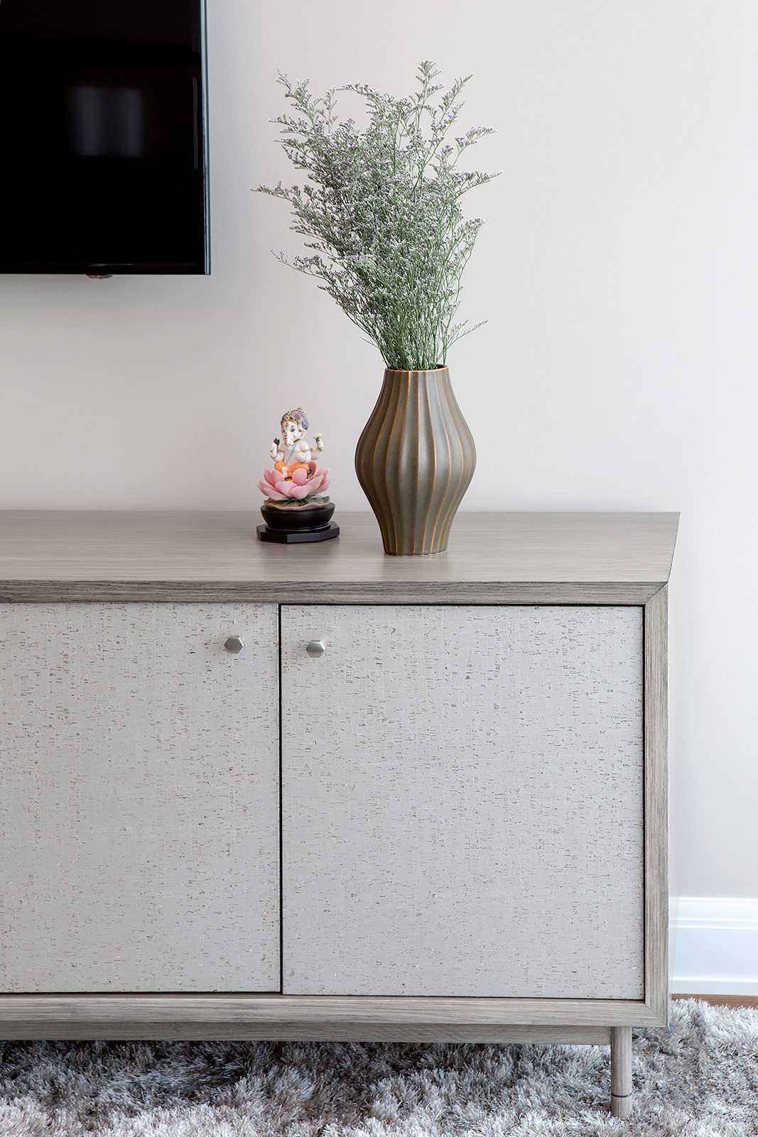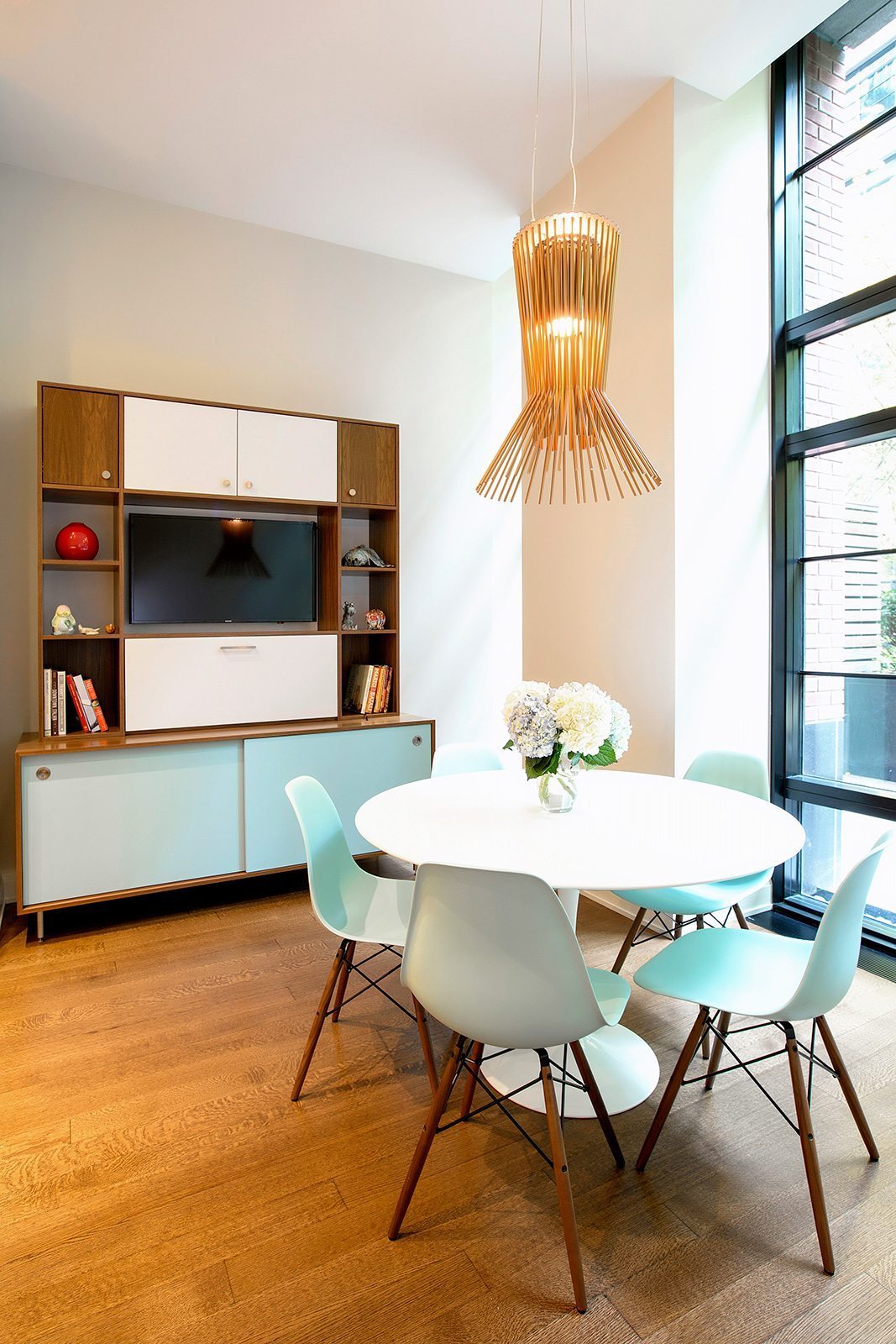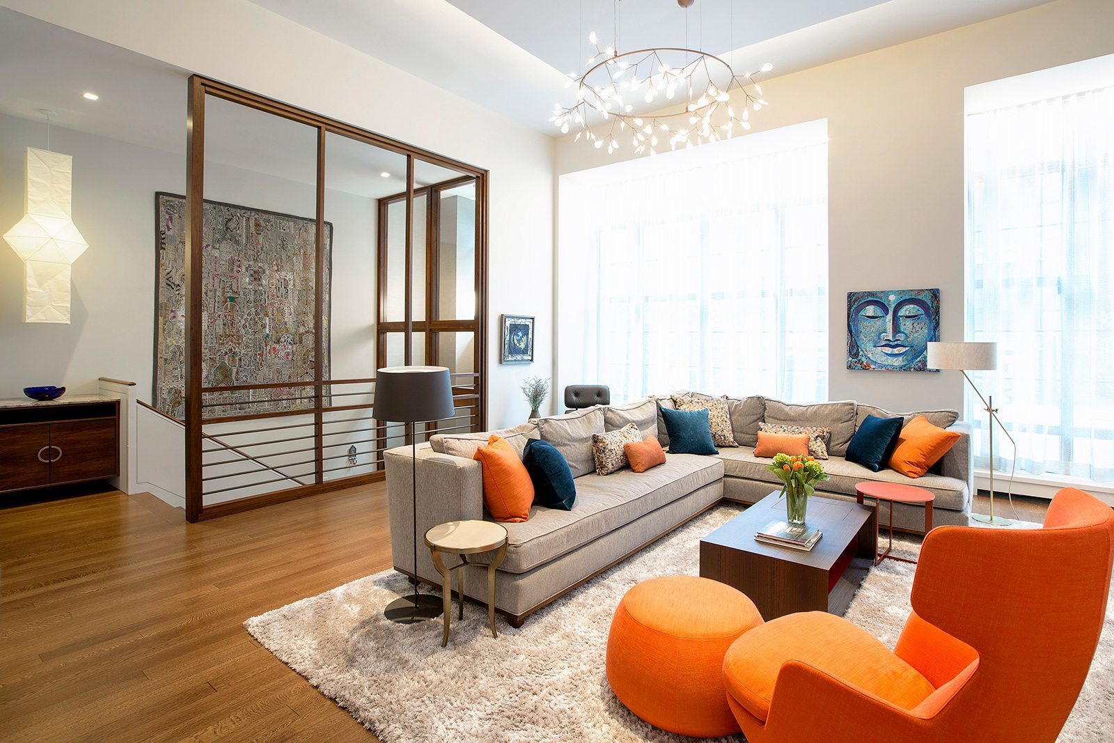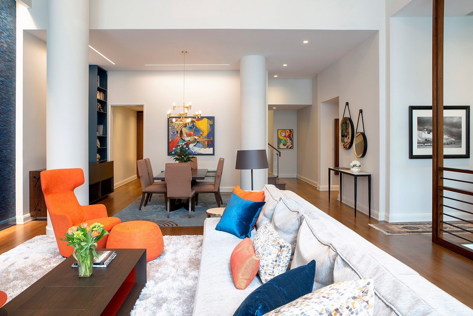 High-end painting and finishes over newly skim-coated walls throughout the entire house.  Custom millwork and furniture. Custom closet and storage systems and specially-designed handrails on all stairways.  . A distinctive display area for the children’s artwork. Addition of a sophisticated A/V system to make the entire project a “smart” home.