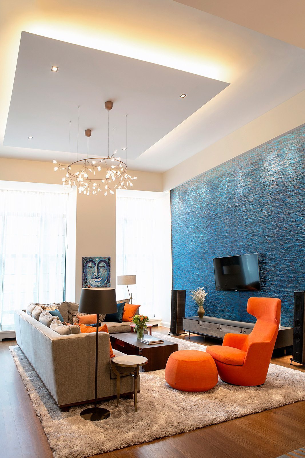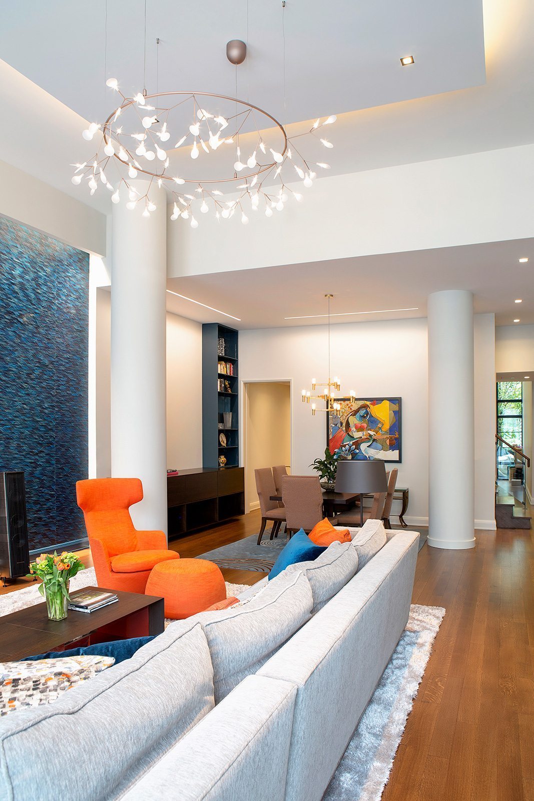 David produced the original punch list for the clients’ first walk-through (after having been the liaison between clients and builder prior)  and recommended the right interior design team to allow the clients to exceed their original vision for the house. Creation of custom lighting in the whole house, requiring a great deal of electrical and switching work.